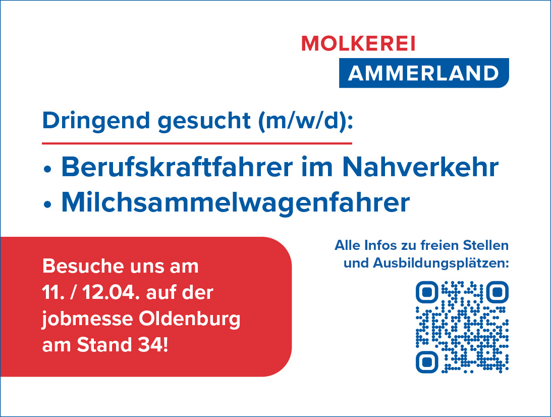 Als eine der führenden Molkereien Deutschlands vereint die Molkerei Ammerland langjährige Tradition mit modernster Technik: Seit mehr als 140 Jahren tief in unserer norddeutschen Region verwurzelt steht das Unternehmen mit seinen hochwertigen Milchprodukten in mehr als 70 Ländern für Qualität. Was das Unternehmen ausmacht? Ein faires Miteinander, langfristiges Denken und ein verantwortungsvoller Umgang mit Mensch, Tier und Umwelt. Wer hier arbeitet, ist Teil einer starken Gemeinschaft, die Produktion, Qualität und Nachhaltigkeit jeden Tag neu zusammenbringt.